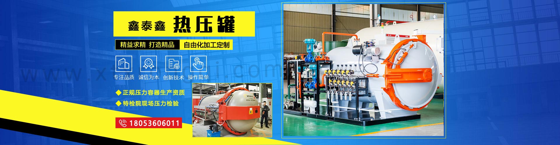 山東鑫泰鑫智能裝備有限公司是一家專門從事壓力容器研發、生產、銷售、售后為一體的實體廠家,尤其在壓力容器中的硫化罐、熱壓罐、蒸壓釜、木材處理罐、熱悶罐、動物無害化處理設備濕化機等設備方面有著更加豐富的研發生產經驗,公司立足于山東省諸城市,產品銷往國內以銷往更遠地區,我們力爭在壓力容器行業做到更大更強。作為生產廠家我們擁有著由管理部門頒發的壓力容器生產資質,所生產的壓力容器皆會通過特檢院的壓力檢測并出具相應的認證資料,客戶可放心使用。有著任何的壓力容器加工定制需求皆可聯系我...